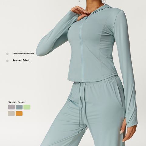 Traje deportivo de yoga Transpirable Casual Cremallera Manga larga Cintura alta Pantalones de pierna ancha Frente Color puro Conjuntos de yoga
