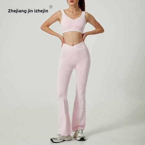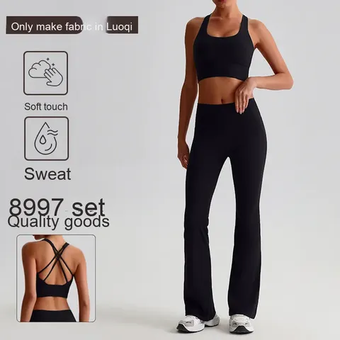 Conjuntos de yoga Fitness Pantalones de pierna ancha Correas entrecruzadas de secado rápido Tela sin espalda Cómodo Conjunto de Deportes de yoga para correr al aire libre