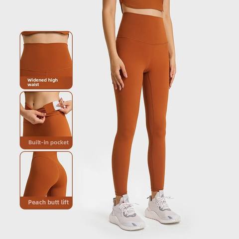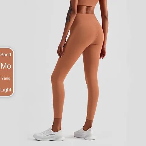 Pantalones de yoga Cintura alta Sin vergüenza Línea Diseño de una pieza Sensación desnuda Peach Hip Tight Fitness Deportes Pantalones largos Leggings de yoga