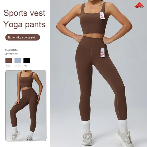 Traje de Yoga de gama alta para mujer Diseño de dos piezas Nude Feel Fitness Wear Conjuntos deportivos Alto elástico XS a XL Tamaños Conjuntos de Yoga de patrón sólido