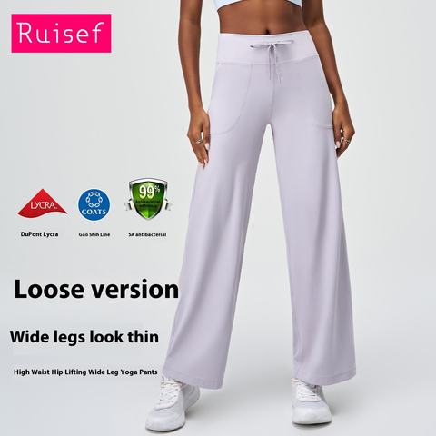 Pantalones de Yoga de cintura alta Diseño micro acampanado Levantamiento de glúteos sueltos Moldeador de solapa lateral Bolsillo Drapey Leggings anchos