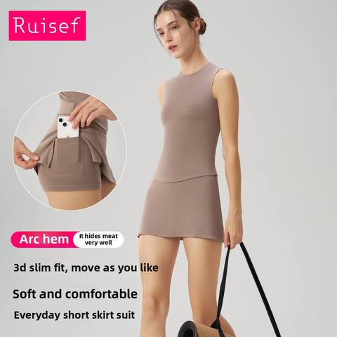 Nuevo conjunto deportivo de moda, cómodo, transpirable, línea A, falda de tenis, pantalones de Golf, pantalones cortos ajustados con patrón sólido, conjuntos de Yoga